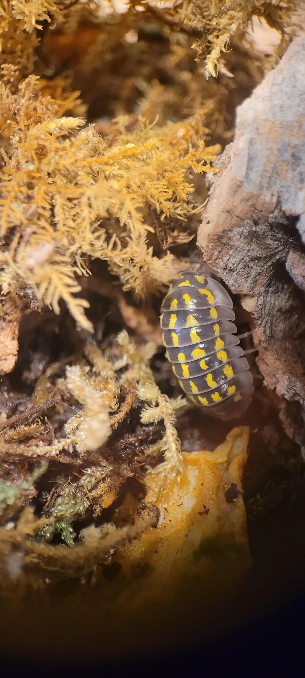 High Yellow Spotted Giant isopods also enjoy living inside hiding spots as much as possible. Experts highly recommend that you add a thick leaf litter and lichens layer at the top of the mix. You can add things likecoconut coir, charcoal, calcium supplements, etc., in the mix to create a suitable environment for them